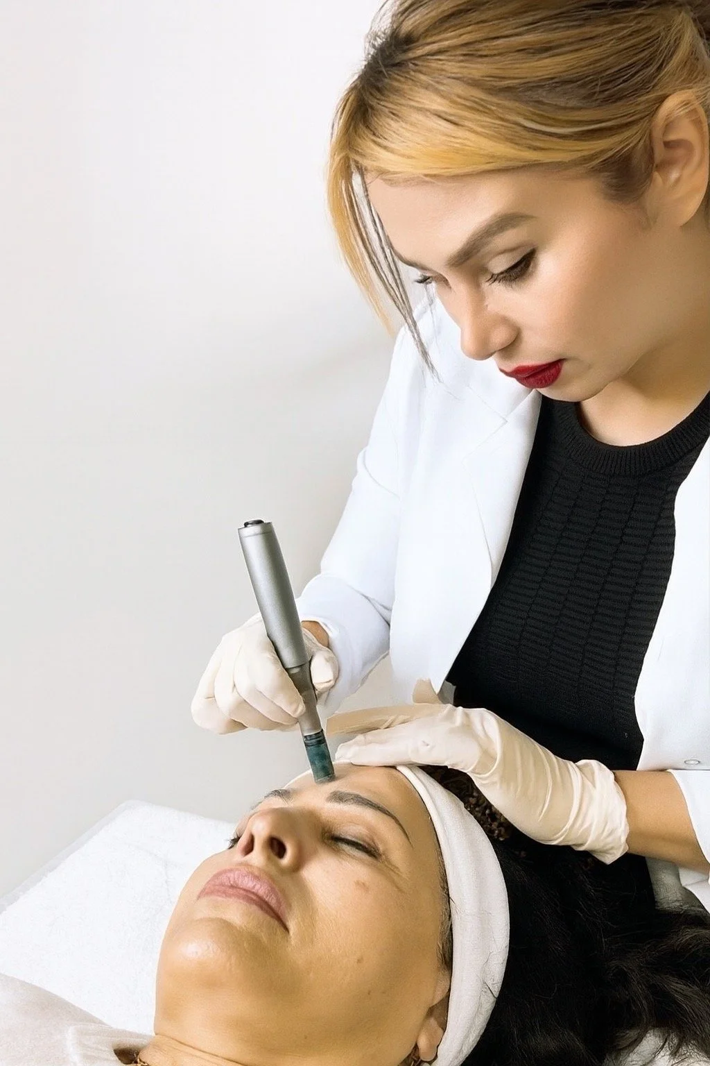 Electric mesotherapy for the lips and eye area is a non-invasive treatment that uses gentle electrical pulses to help deliver active serums deep into the skin. This method improves product absorption, hydrates the skin, and stimulates collagen production. It can enhance lip volume, reduce fine lines around the lips, brighten the under-eye area, and minimize puffiness and dark circles. The procedure is painless, safe, and provides visible rejuvenation without needles.